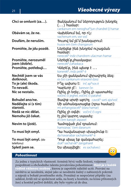Příručka obsahuje přepis výslovnosti všech frází, což vám výrazně usnadní správné vyslovování arménských slov. Každá fráze je doplněna jednoduchým přepisem výslovnosti, který vám pomůže zvládnout i složitější výrazy a rychleji se zorientovat v mluvené arménštině. Díky této pomůcce budete jistější v každodenní komunikaci a lépe porozumíte v různých situacích.