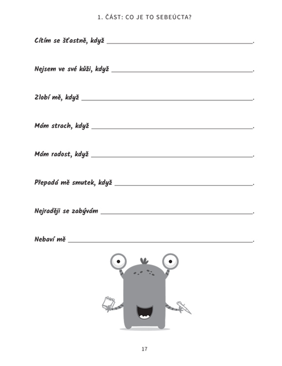 Děti ve věku od 7 do 11 let procházejí obdobím velkých změn a vývoje v oblasti mysli, těla, vzdělávání i společenských vztahů – to vše může mít dopad na jejich utvářející se sebeúctu. Dík ytéto knize děti zjistí, jaké myšlenky a přesvědčení je brzdí, ale především se naučí respektovat a uznávat svou jedinečnost i jedinečnost ostatních lidí. Když se jim podaří změnit svůj úhel pohledu, budou se cítit sebejistěji a budou lépe vybaveny pro nástrahy každodenního života.