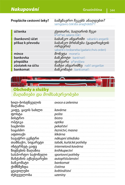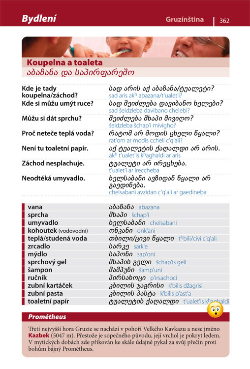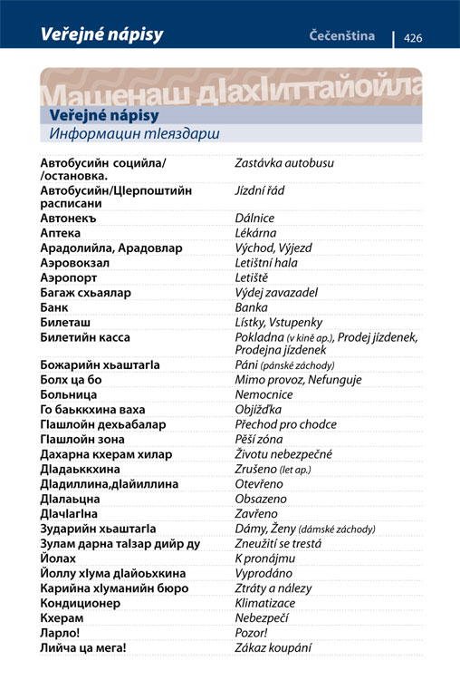V tomto výjimečném jazykovém průvodci na cesty po Kavkaze najdete čtyři zcela rozdílné jazyky, kterými se zde hovoří a zároveň jsou i úředními jazyky. Jsou to arménština, ázerbájdžánština, gruzínština a čečenština, jazyky používané dnes na území Kavkazu, které mají velmi odlišná písma. Podívejte se na ukázkové stránky! Kromě konverzační části obsahuje kniha také stručný přehled gramatik a užitečné přílohy na cesty. Takto komplexně pojatá jazyková publikace vyšla u nás poprvé.