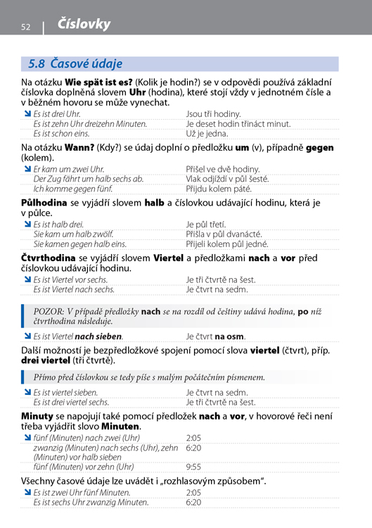 Němčina patří k jazykům, které vyžadují zpočátku velkou trpělivost, je nutné zvládnout větší objem znalostí, abyste si mohli aspoň jednoduše popovídat. Její gramatický systém je poměrně složitý, ale zároveň pravidelný. Proto jsme obecné výklady omezili na minimum a doplnili je přehlednými tabulkami. Každý jev je také dokreslen velkým množstvím příkladů pečlivě vybraných z tisku či spolehlivých internetových zdrojů tak, aby skutečně odrážely současnou podobu německého jazyka. Důraz jsme přitom kladli na jevy, které jsou pro běžné vyjadřování důležité a ty, které se od češtiny liší. Proto zde najdete samostatné kapitoly týkající se např. směrových příslovcí hin a her, použití členu, stavby německé věty či přehledy odlišných předložkových vazeb doplněné množstvím příkladů. Naopak méně používané slovesné tvary jsou zmíněny pouze okrajově.