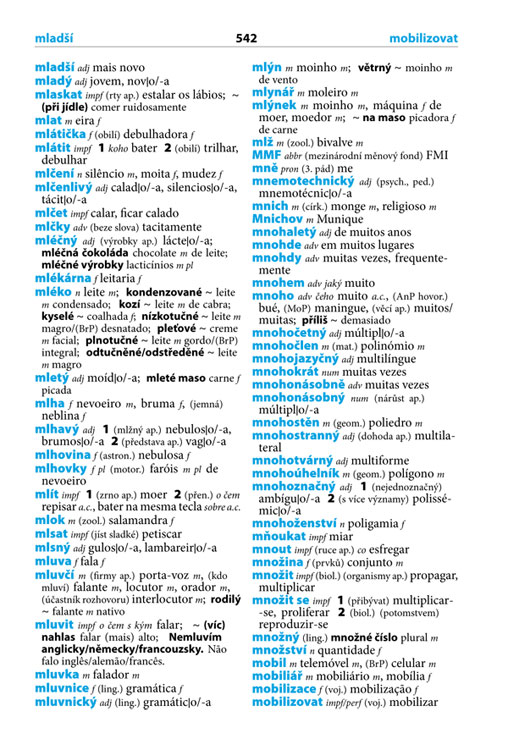 Slovník zcela reflektuje nová pravidla portugalštiny, která vstoupila v platnost 1. 1. 2010. Ortografický systém prošel díky Dohodě o společném pravopisu poměrně značnými změnami, které vedou k postupnému sjednocování světové portugalštiny. Naše publikace je v souladu s touto dohodou a uvádí v případě potřeby všechny pravopisné varianty daných slov. Nechybí ani příklady převzaté z běžného jazyka. Praktičnost této publikace ještě umocní evropská výslovnost uvedená v závorce za heslem. Všechna hesla a ustálené obraty jsou doplněny o předložkové vazby a upřesňující závorky, aby bylo docíleno maximální jednoznačnosti významu a výstižnosti překladu. Tyto doplňkové informace vám pomohou rychle a snadno najít ten správný význam slova a vybrat nejvhodnější překlad. Předložkové vazby a příklady vám napoví, jak dané slovo nebo slovní spojení správně užít ve větě. Podrobný přehled portugalské gramatiky spolu s ilustračními příklady vám umožní rychle si osvojit základy jazyka a zásady jeho užívání.